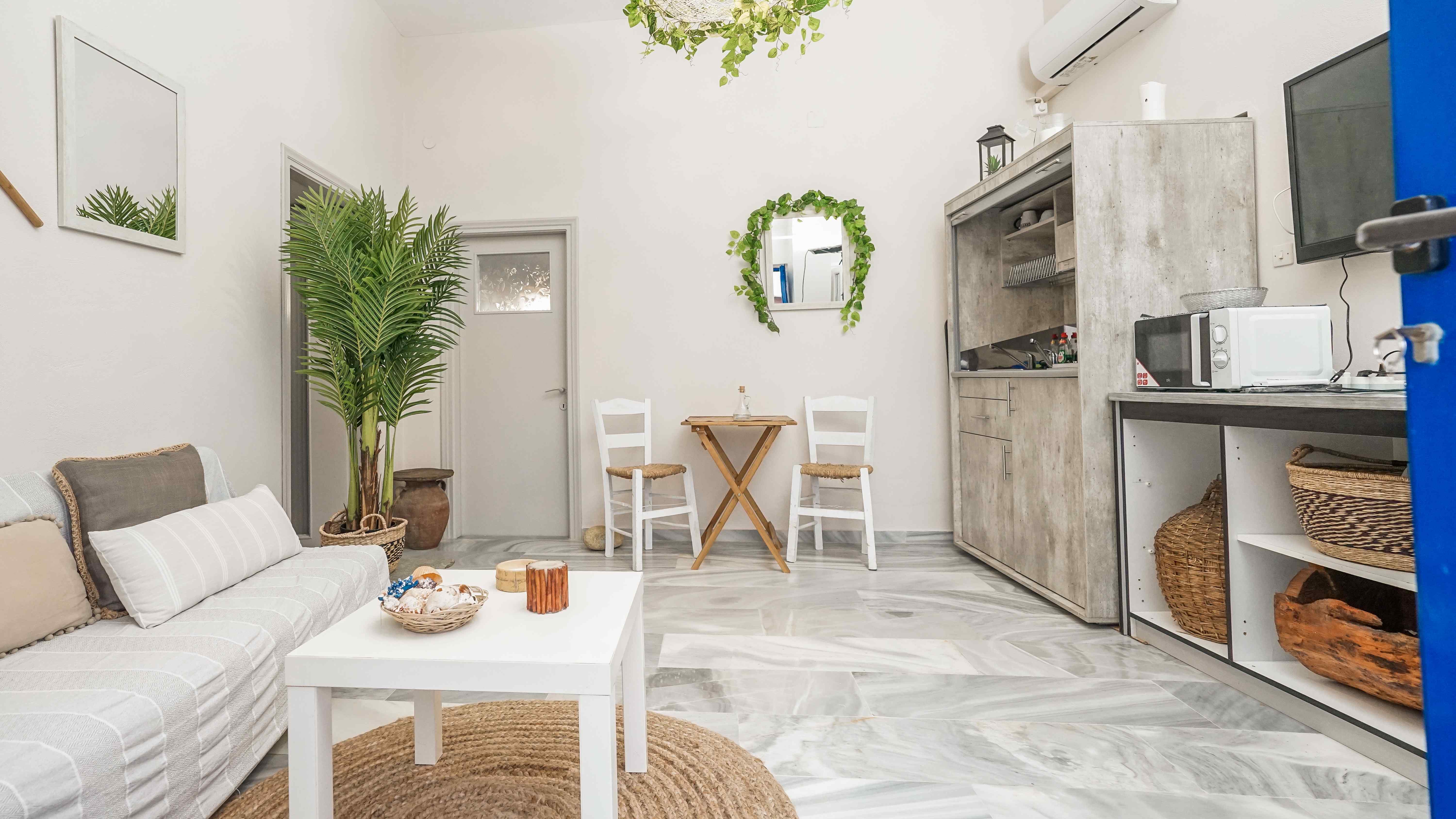 This room is a unique choice for those who appreciate the traditional Cycladic element. The earthy tones that surround it create a sense of tranquility and serenity once you step inside. It has all the necessary amenities for a delightful stay in the village of Falatado.